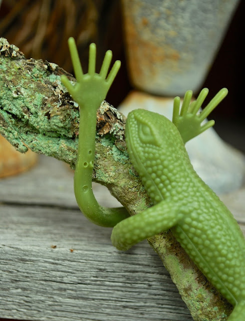 Ibland måste man få vara lite barnslig fast man är en bra bit över 40. Som när man stannar en snabbis på Biltema för att köpa nya sopsäckar, men istället kommer till kassan med två paket plantuppbindare i form av gröna små ödlor. Två små "skonsamma och lättformade" gummikrabater för 14 kronor. Minsann!