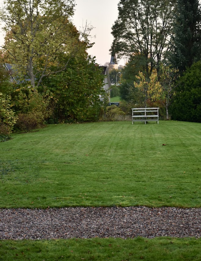 Jag tog ut gräsklipparen och körde en runda över både gräs och löv. Förhoppningsvis var det sista rundan för i år, men fortsätter det att vara 14-16 grader om dagarna, så lär gräset fortsätta växa. Å andra sidan är det ju himla ett himla nimt sätt att slippa kratta löv, hehe!