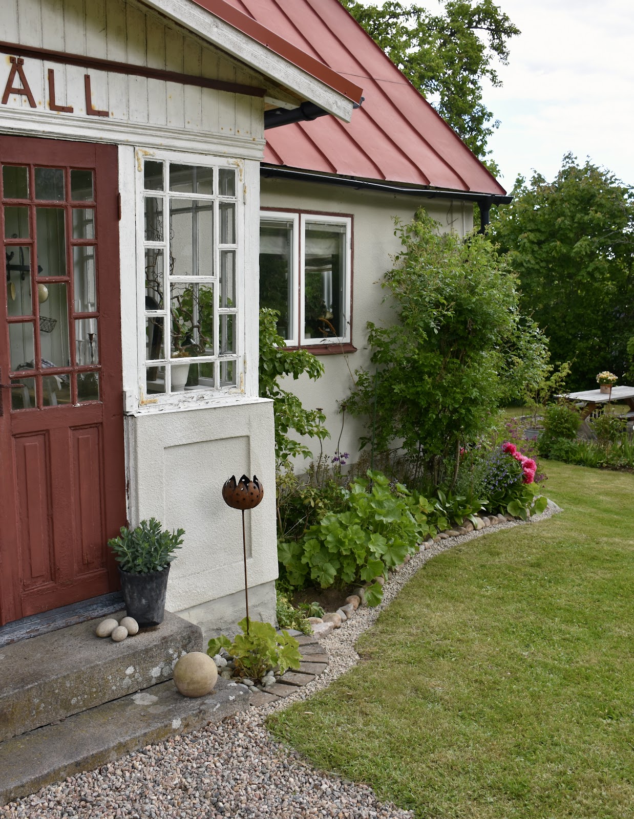 Efter regn kommer ju som bekant sol, och precis så var det idag. Det var ljuvligt försommarväder med varma temperaturer, och jag var ute i trädgården och grejat i över fem timmar. Jag började med gräsklippning, och sen fortsatte jag mitt redan påbörjade projekt med att skära gräskanten och lägga grus mot rabatterna närmast huset. Kortsidan gjorde jag redan tidigare, men idag gick jag loss på framsidan. Det blev så himla prydligt, och nu kommer jag förhoppningsvis inte klippa sönder växterna i rabatten med gräsklipparen fler gånger. Det gjorde jag nämligen ganska ofta innan.